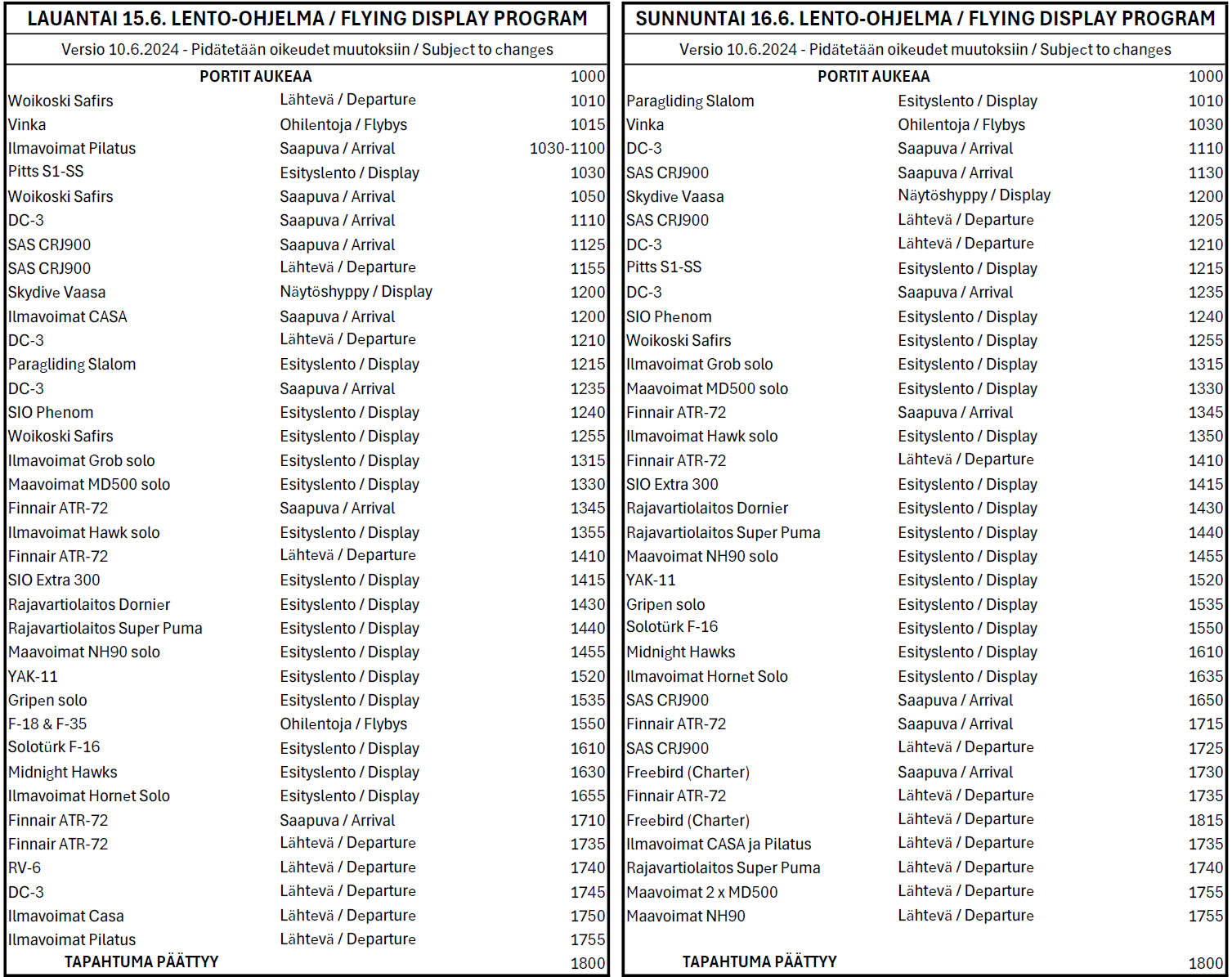 Lento-ohjelman lisäksi myös maassa on paljon nähtävää. Paikalla on kattavasti erilaisia ilma-aluksia pienemmistä potkurikoneista suuriin suihkukoneisiin, helikoptereita unohtamatta. Lisäksi paikalla on useita yrityksiä esittelemässä toimintaansa, sekä erilaisia myynti- ja ruokakojuja.